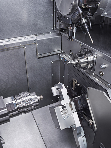 Dieser Produktionsdrehautomat verbindet die Produktivität eines sehr leistungsfähigen Drehautomaten mit der Fähigkeit, auch anspruchsvolle Werkstücke präzise und wirtschaftlich zu fertigen.
