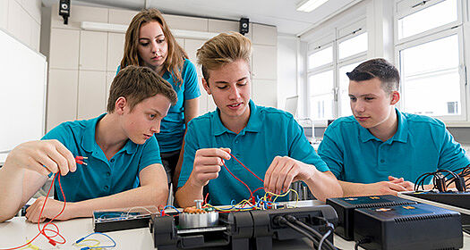 Ab dem zweiten Jahr ihrer Ausbildung unterstützen unsere Elektroniker/-innen bereits tatkräftig die Fachkräfte in den Betriebsbereichen. Bei der Montage elektrischer Baugruppen sowie bei der Inbetriebnahme von CNC-Maschinen sammeln sie nachhaltiges Wissen und festigen ihr Können auch in der Steuerungs- und Antriebstechnik.