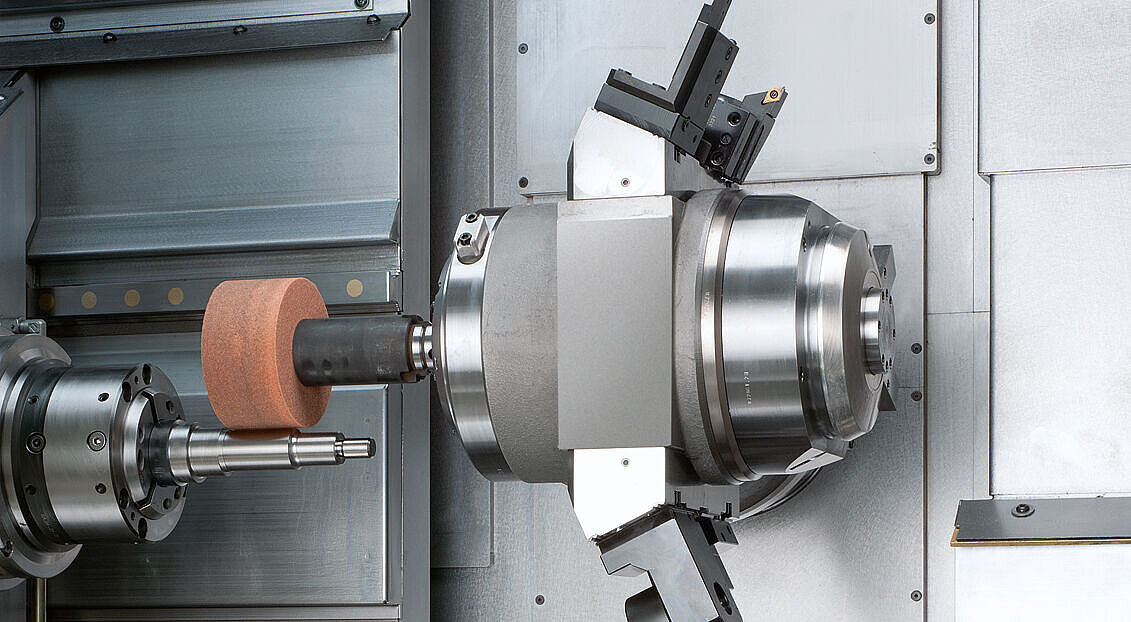 Med det stora precisionsrullagret uppnår du högsta styvhet och precision. Självklart kan konventionella CBN- och diamantverktyg användas på INDEX fleroperationssvarvar med slipkapacitet.