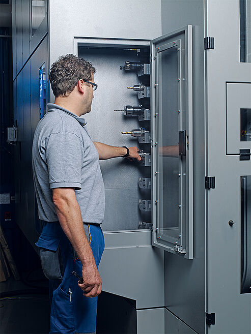 - Gleichzeitiges und unabhängiges Wechseln an beiden Frässpindeln möglich