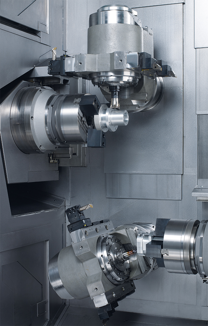 - Zwei vollwertige 5-Achs-Systeme in einem Dreh-Fräszentrum