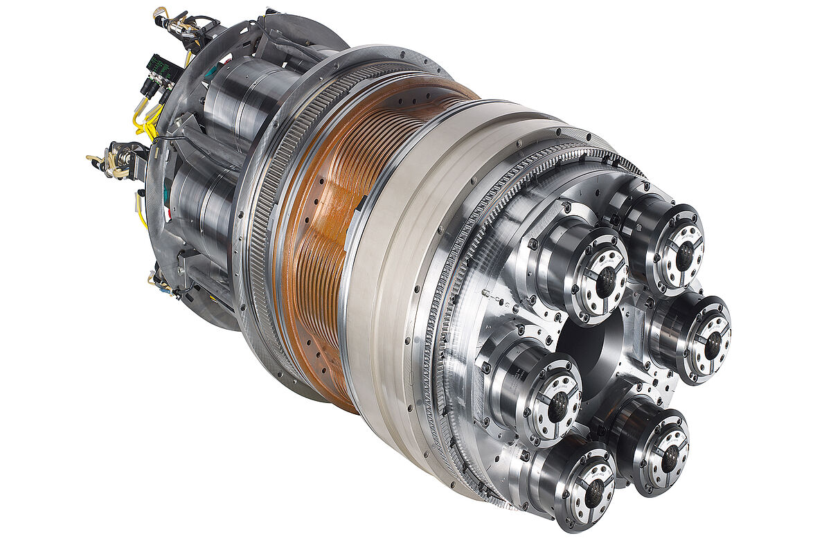- Schnelle Schwenkbewegung und hydraulische Verriegelung der Schwenk-Synchronspindel mittels Hirth-Verzahnung