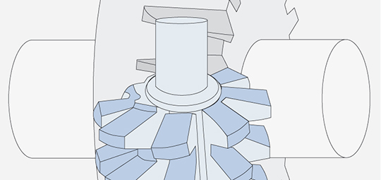 - Schwenkarm wird in der Bearbeitungsposition mit dreiteiliger Hirth-Verzahnung verriegelt und sorgt somit für höchste Steifigkeit