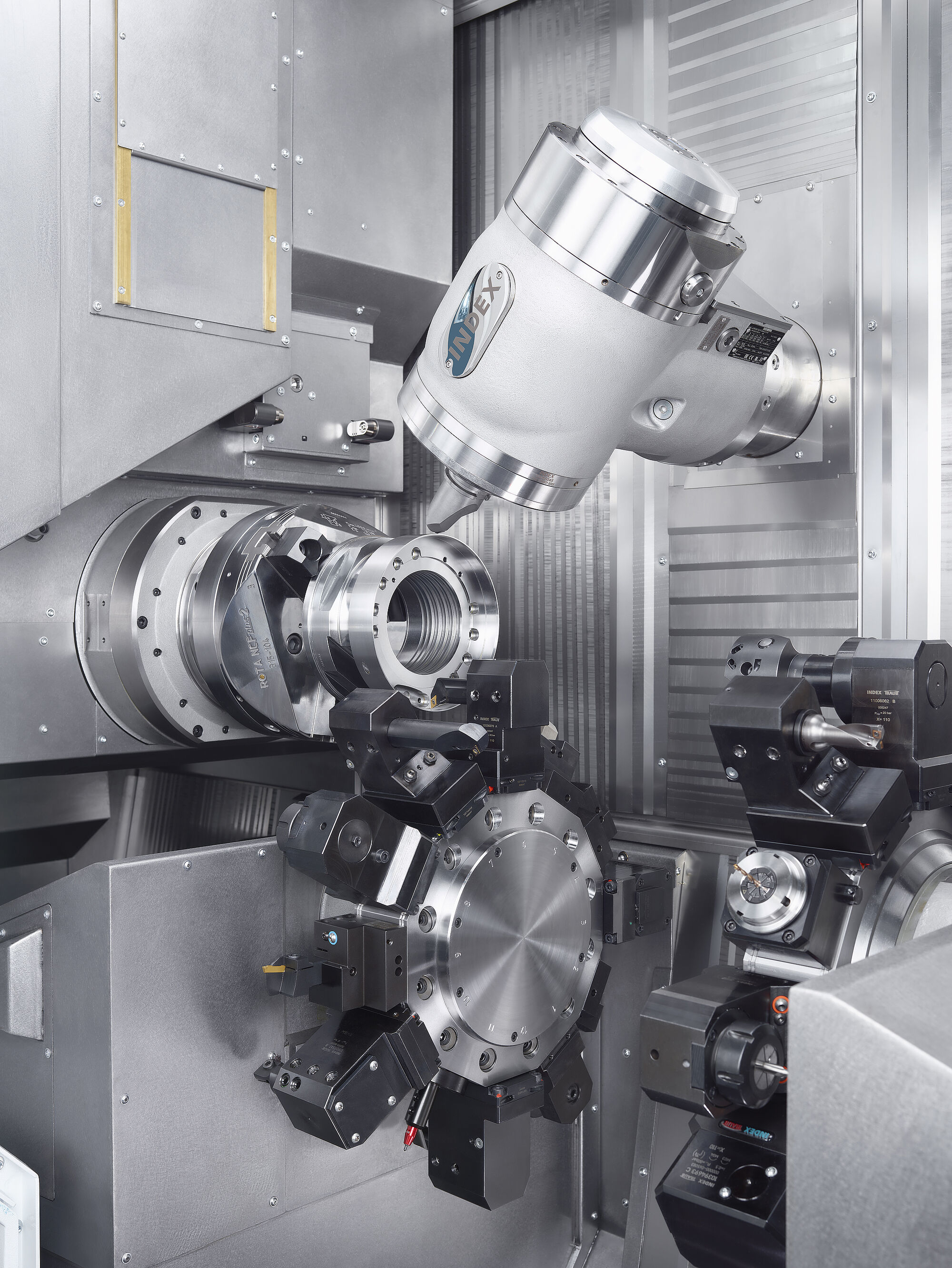 Doch was wäre modernste Maschinentechnik heute ohne passende Automatisierung? INDEX wird dem wachsenden Bedarf mit verschiedenen Angeboten gerecht, die von einfachen, in die Maschinen integrierten Werkstückabführeinrichtungen bis zu anspruchsvollen externen Roboterlösungen reichen.