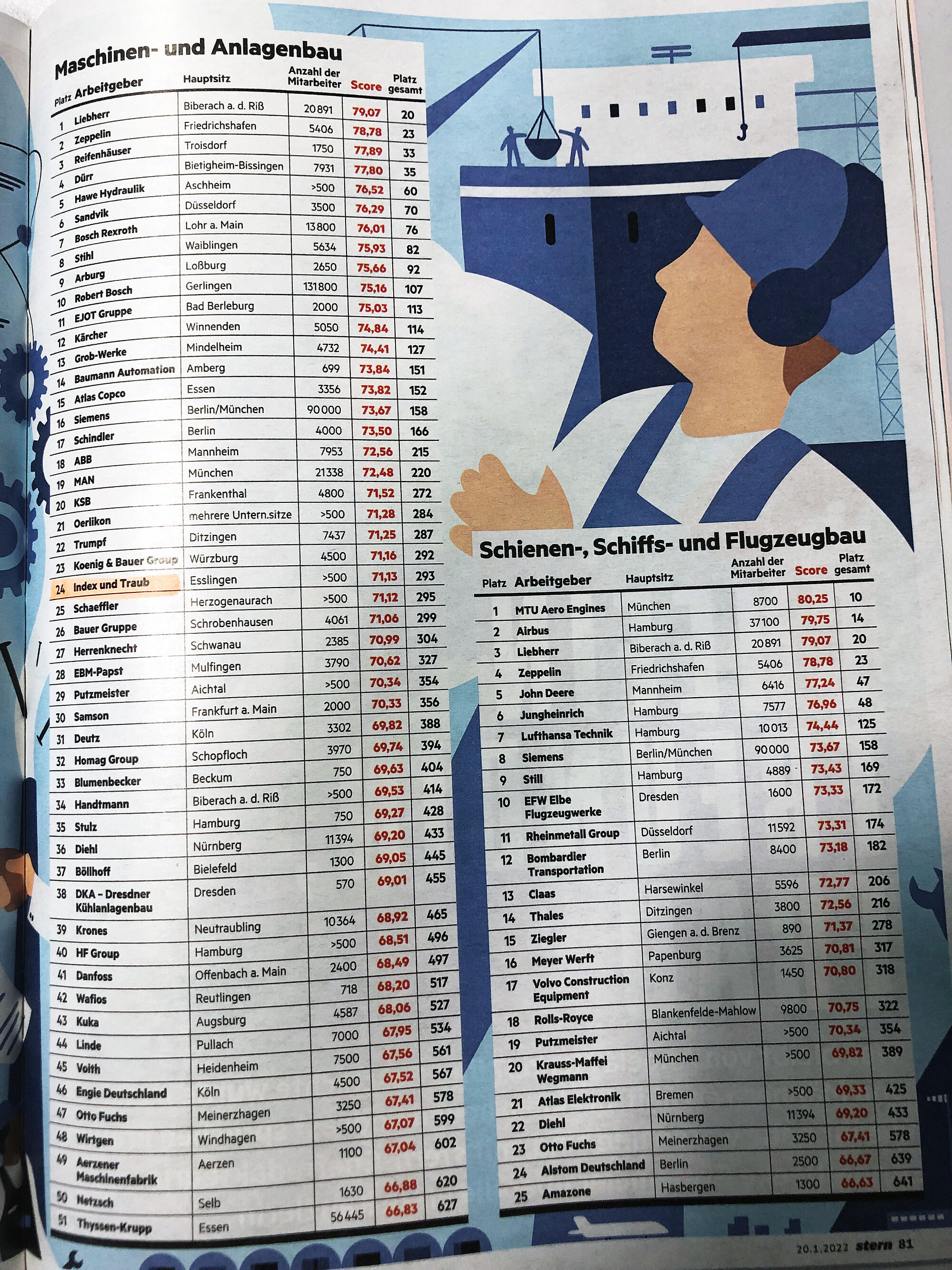 Die Firmen konnten sich nicht selbst für die Untersuchung bewerben. Hier wurden wir im Segment Maschinen- und Anlagenbau in einem sehr illustren Kreis von Unternehmen auf Platz 24 gewählt.