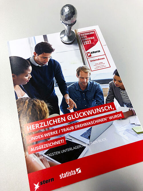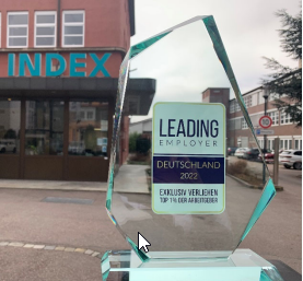 Die INDEX-Werke GmbH & Co. KG ist als LEADING EMPLOYER Deutschland 2022 ausgezeichnet worden – und gehört damit zu den besten 1 Prozent der Arbeitgeber. LEADING EMPLOYERS ist im Format der Metaanalyse die weltweit umfassendste Studie zu Arbeitgeberqualitäten. Sie übersetzt ein breites Spektrum von Kriterien in eine ganzheitliche Bewertung.