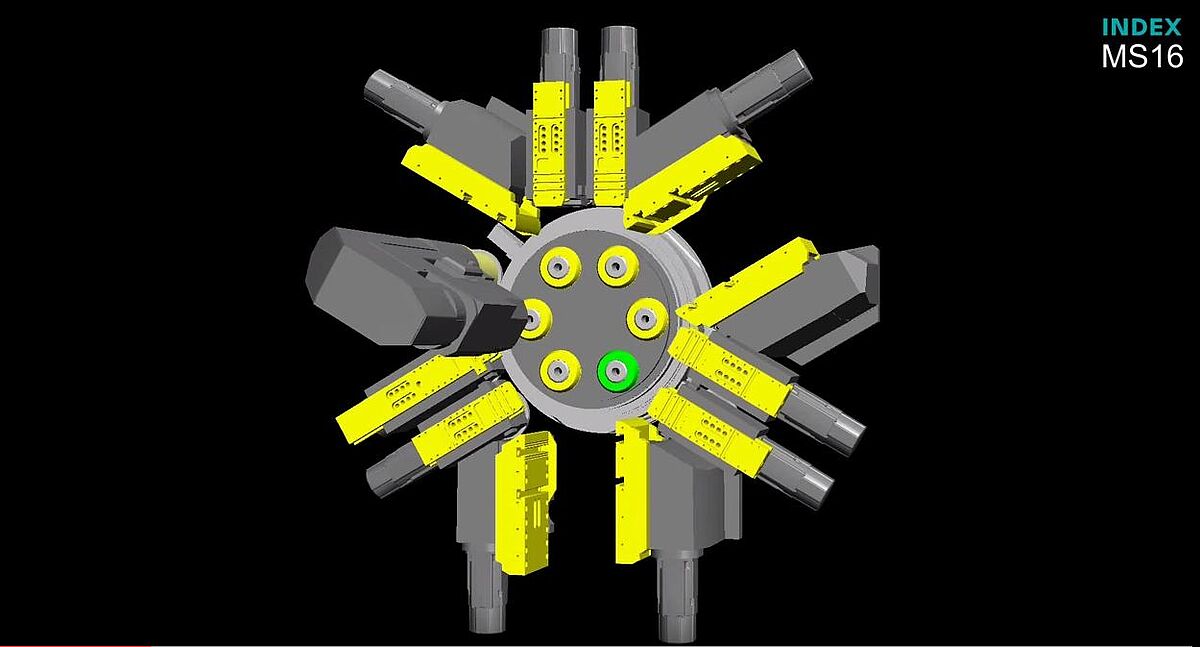 • Double 3-spindle machining is possible on the INDEX MS16-6 plus