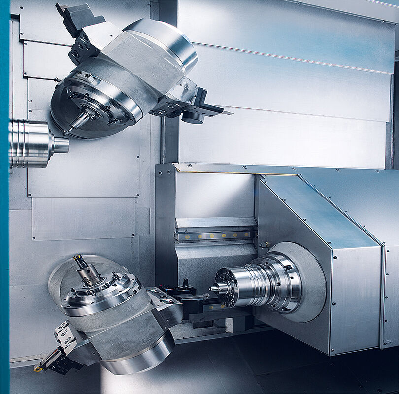- 5-axis machining on workpiece front and rear allows an extremely large variety of parts