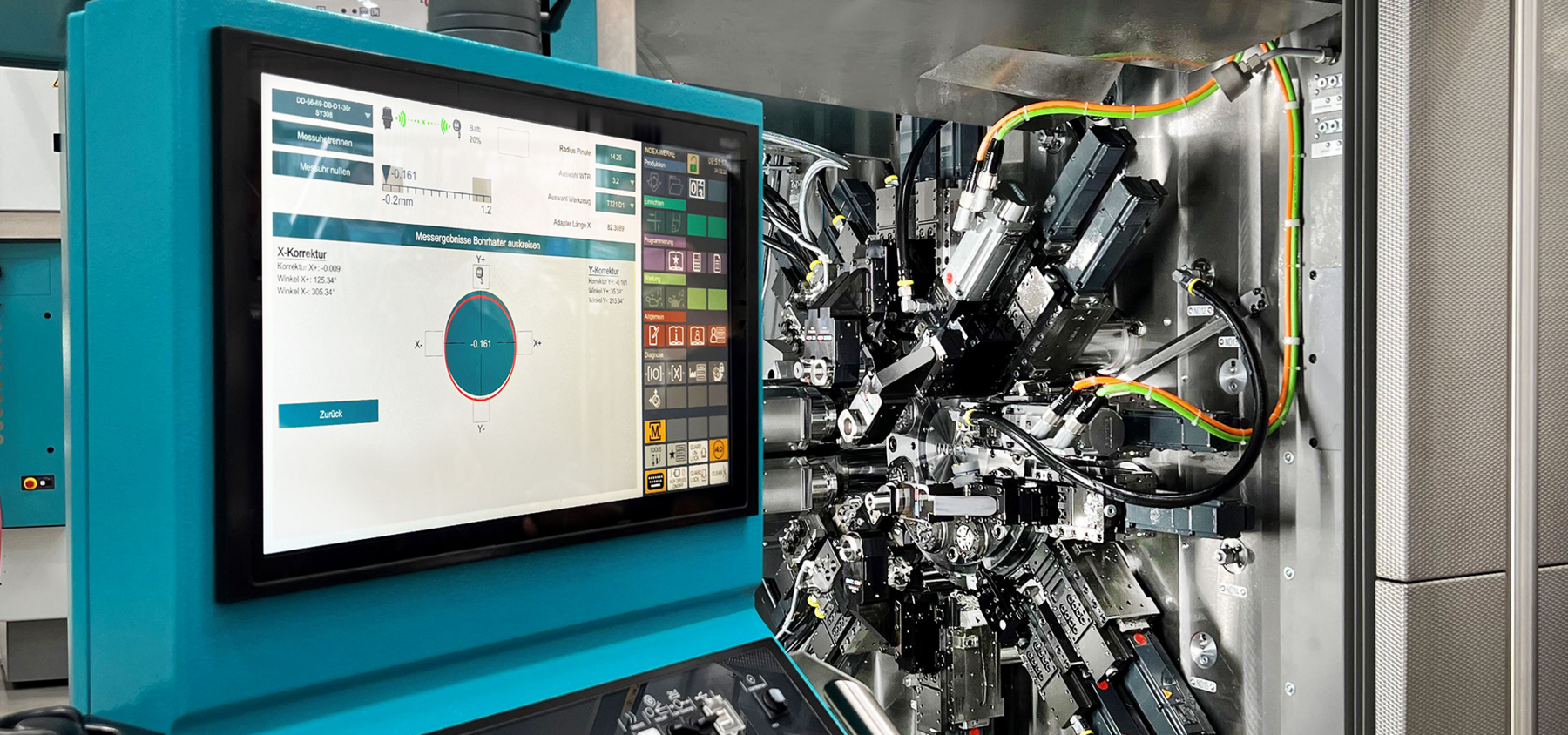 Centering drill holders in multi-spindle automatic lathes is a necessary but time-consuming and inconvenient task—or it used to be! With our newly developed INDEX CenterMaster, this task is practically child’s play: Based on a wireless dial gauge, a receiver installed in the control cabinet, and advanced mathematic software, the drill holders can be precisely aligned to the spindle—in less than five minutes!