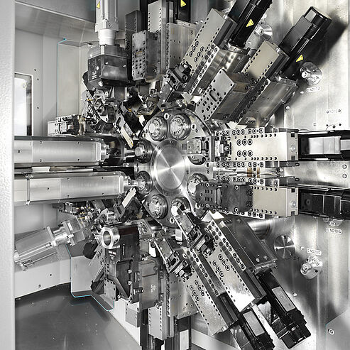 During machining, the optimal speed, which can still be varied during cutting, can always be programmed for each spindle position and each cutting edge of the tool. The result is better chipping, maximum surface quality, short part production times, and longer tool service life. You can also machine high-strength materials that up to now were hardly suitable for multi-spindle machines. It is also possible to make speed changes during drum indexing, thus avoiding any additional secondary processing times.