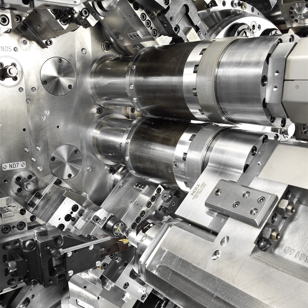 INDEX CNC multi-spindle machines with live tools, C-axis, and Y-axis give you access to entirely new processes, such as: Off-center drilling and thread cutting, inclined drilling, cross drilling, contour milling, hobbing (tooth cutting), polygon turning.