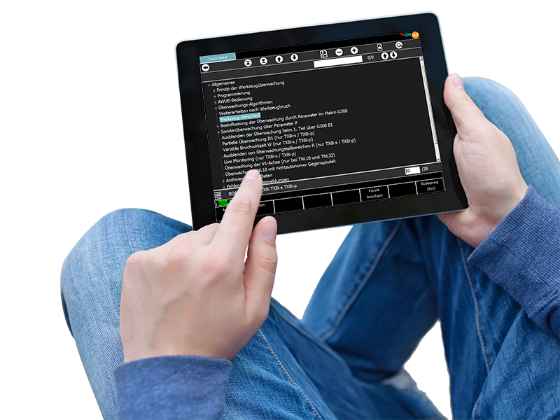Retrieve and view the current machine status and view the control screen by TRAUB remote access on your tablet or smartphone
