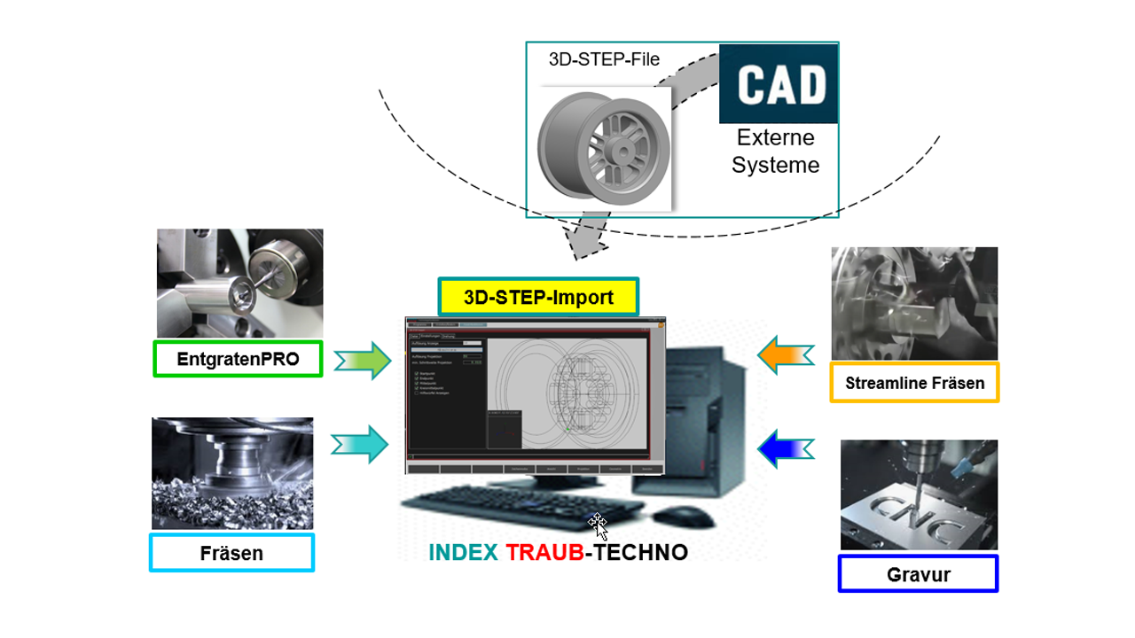 - Direct transfer of contours from 3D-STEP data to the INDEX TRAUB-TECHNO module