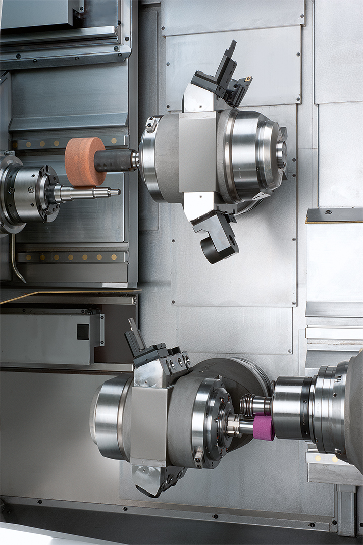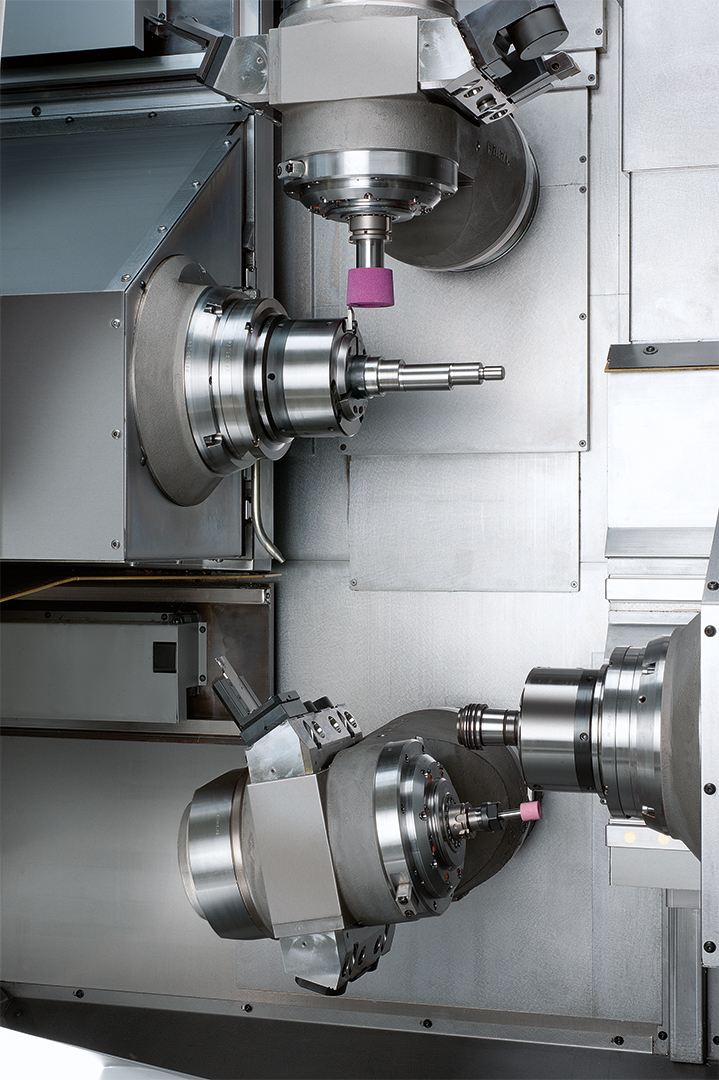Una cinemática perfecta para el rectificado permite mecanizar simultáneamente el lado posterior y el lado frontal con cinco grados de libertad. Estas características ofrecen nuevas e insospechadas posibilidades para el rectificado plano, el rectificado exterior y el rectificado interior. La gran cantidad de herramienta en reserva en el cargador permite reducir los tiempos de preparación y acceder a la herramienta óptima en todo momento.