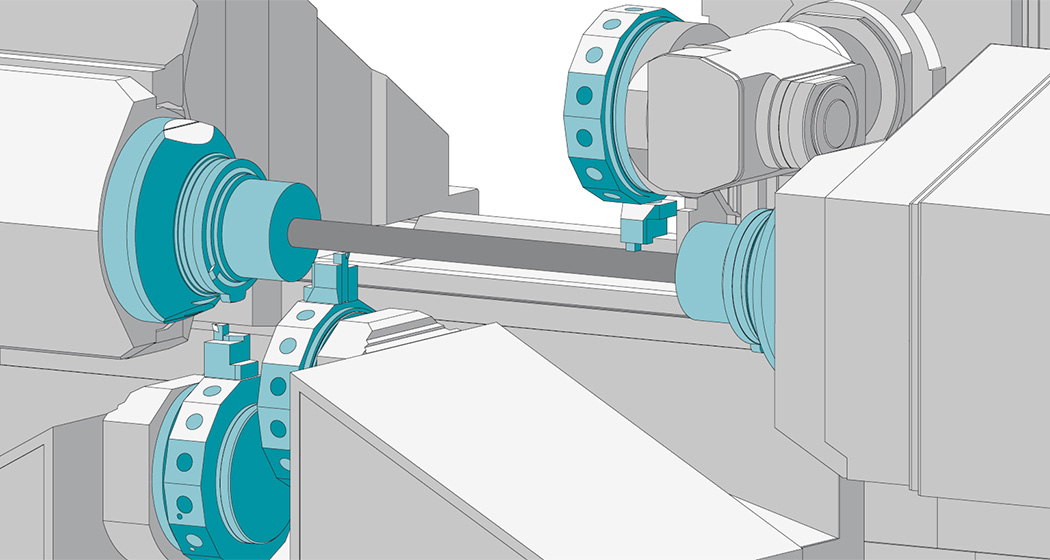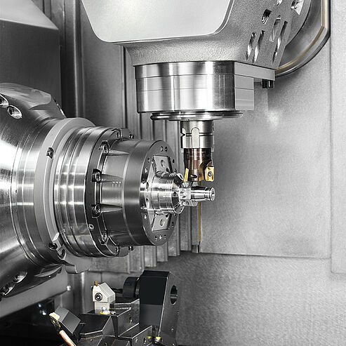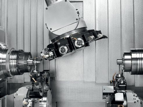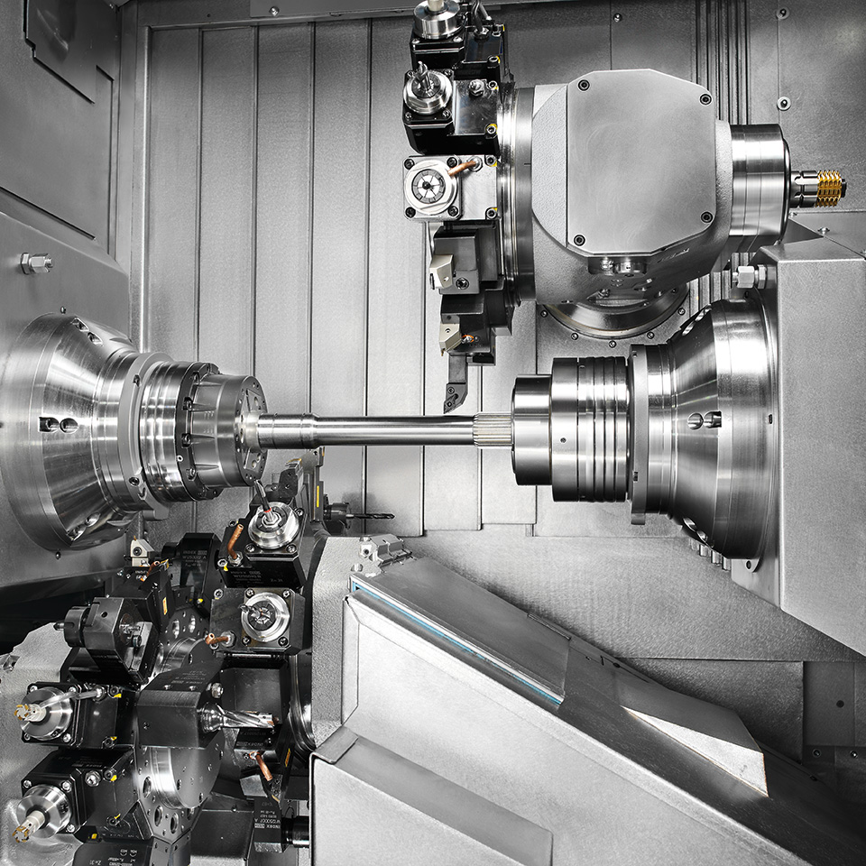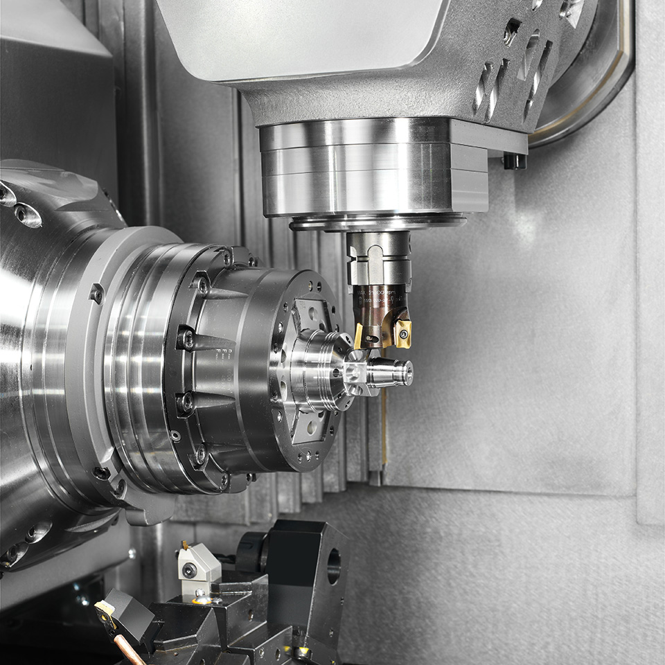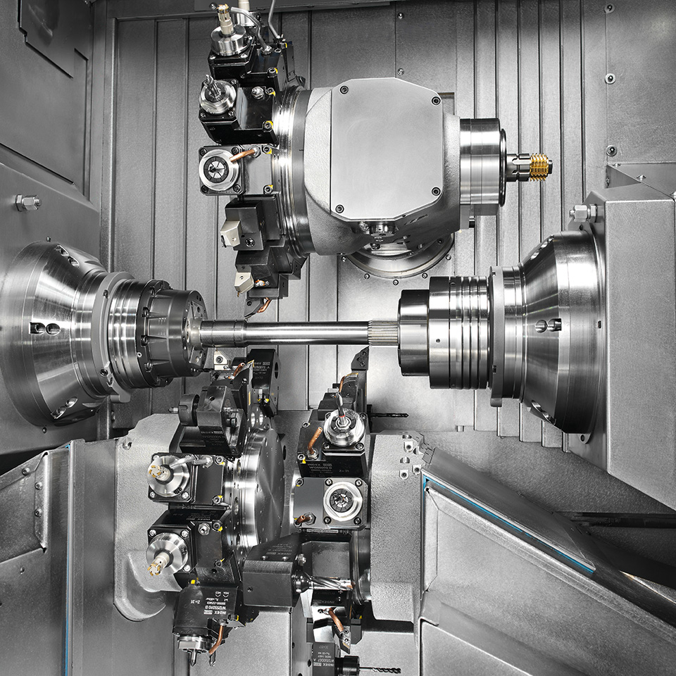 - Hasta tres portaherramientas disponibles con eje Y en el husillo principal y en el contrahusillo