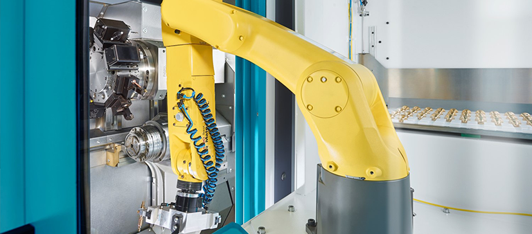 Con la unidad robótica iXcenter se pueden alimentar y extraer piezas en bruto o acabadas de forma rápida, segura y flexible.