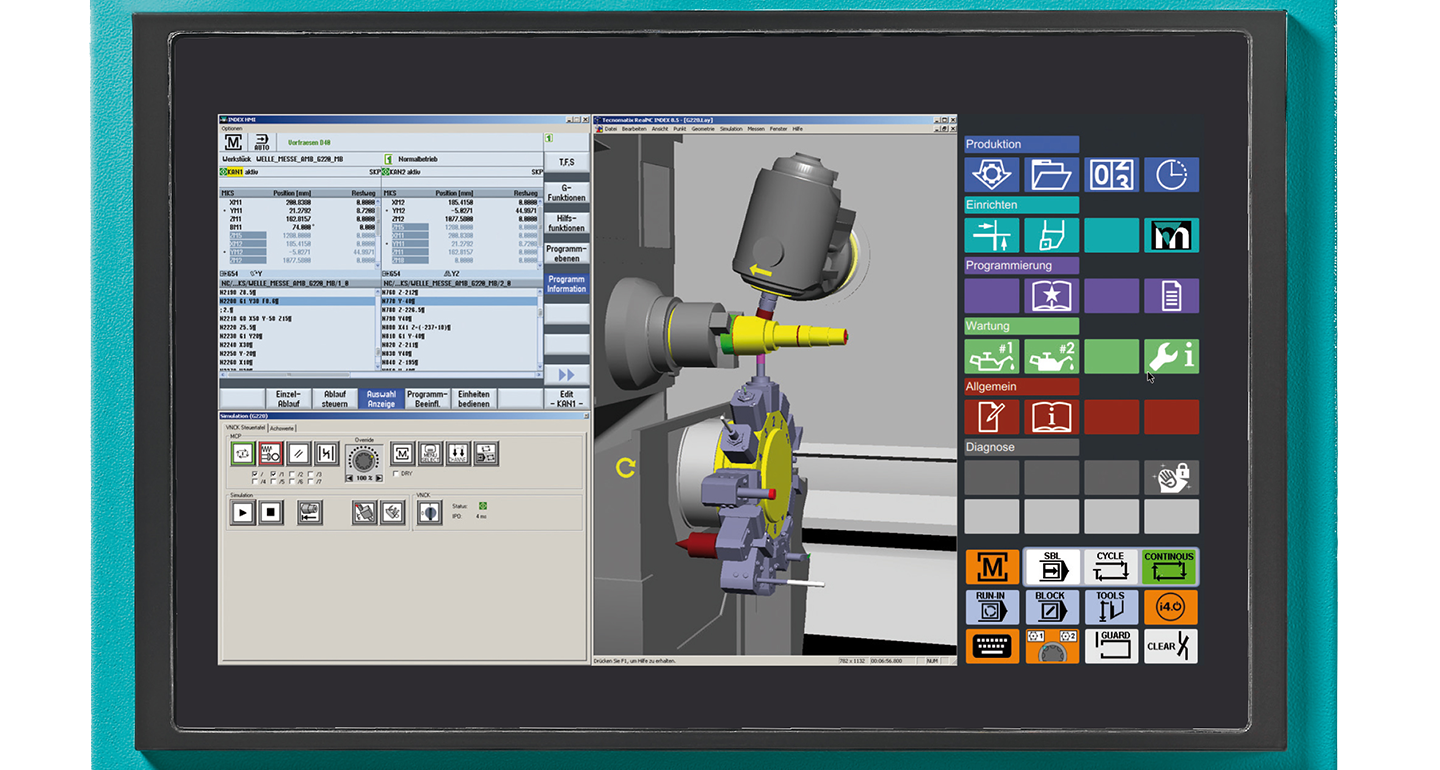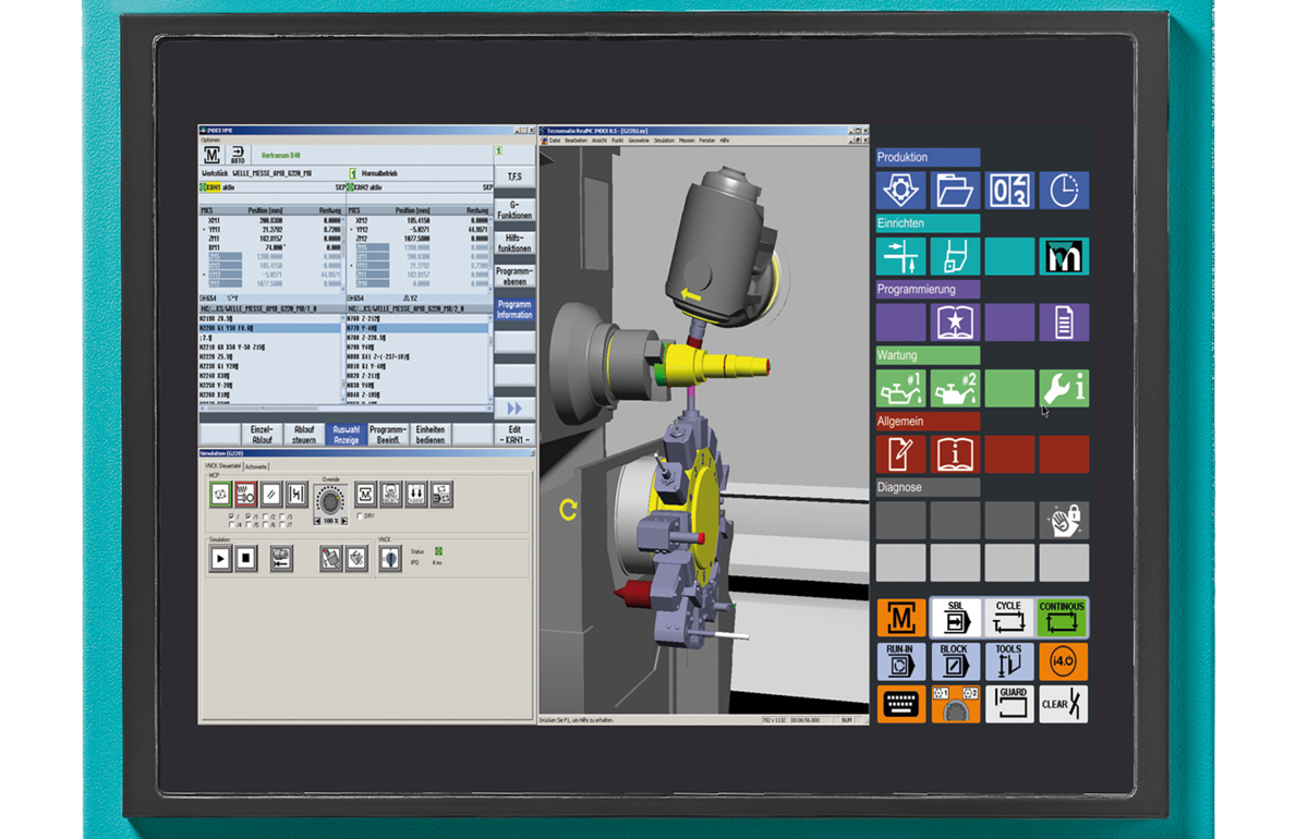 iXpanel comprend la dernière génération de commandes Siemens S840D sl, FANUC 31iB, TRAUB TX8i-s V8.. Un autre élément essentiel est le grand écran tactile 18,5''/15'', qui se prête même aux simulations 3D exigeantes et dispose d'un contrôleur spécifique. Pour ce mini-ordinateur, un logiciel spécifique a été développé. Ce logiciel est utilisé pour fournir à l'opérateur exactement les informations qui l'assistent au mieux pour son activité actuelle.