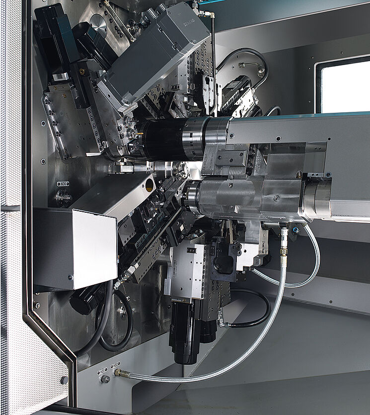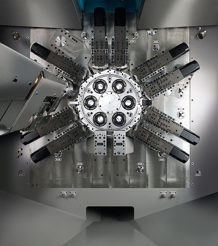 - Max. 6 outils pour l'usinage d ela face arrière pour chaque broche synchrone pivotante