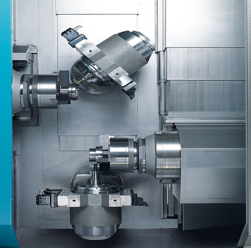 - Dois completos sistemas de 5 eixos em um centro de torneamento-fresagem